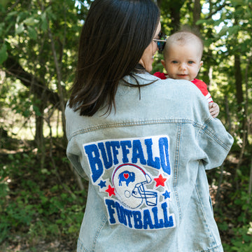 Hooded Football Denim Jacket