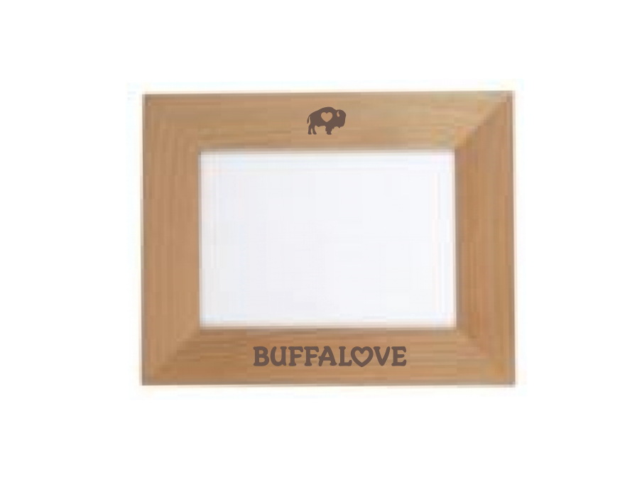 Our 5x7 Photo Frame has our Buffalo engraved on top and the word BuffaLove on the bottom. Perfect gift for all occasions!