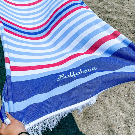 - Reversible Beach towel - One Side has Soft terry loops for quick drying and absorbency, and the second side is woven for easy release of sand.