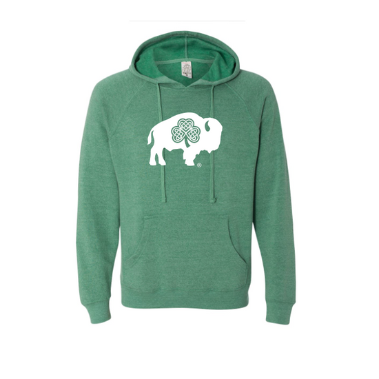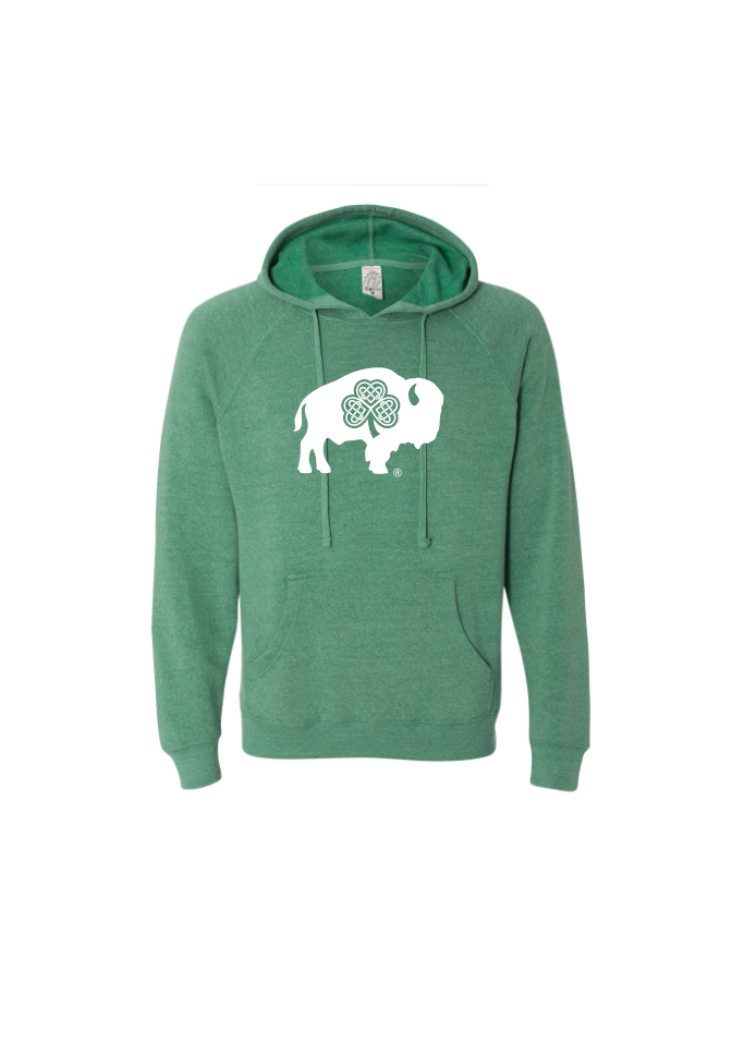 Our Celtic Hoodie comes in Sea Foam Green and are printed with the White Celtic Buffalo logo. Very soft and unisex, fits true to size.