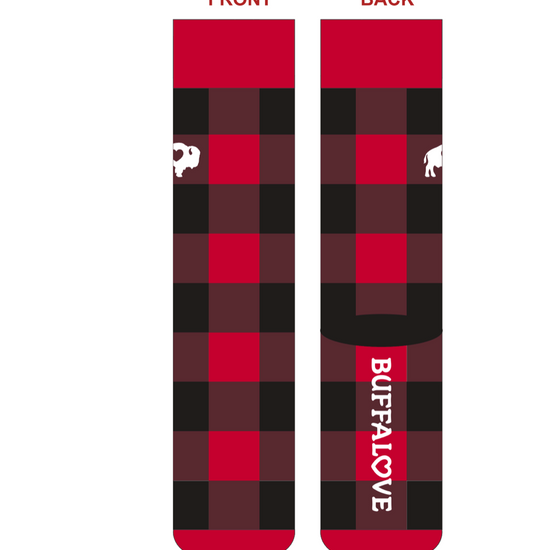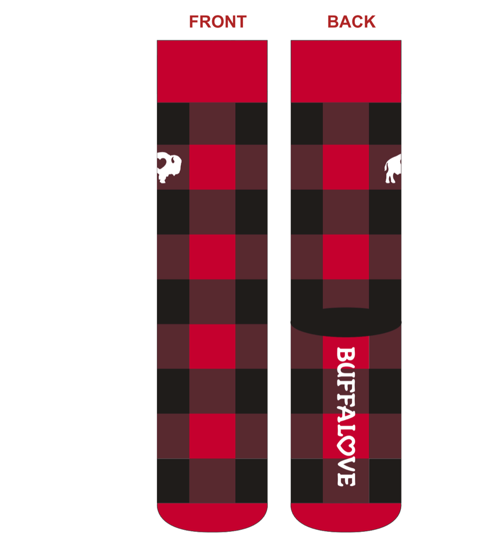 Our Red/Black Crew Socks are unisex, and they are a one size fits most.
