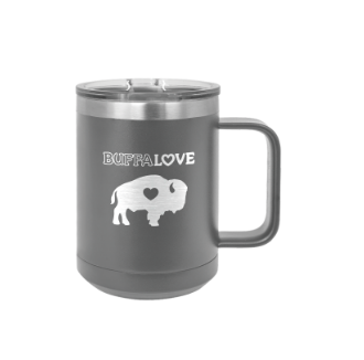 Our Stainless Coffee Tumblers are 15 Oz's and come in Red, White, Royal Blue, Grey, and Black!